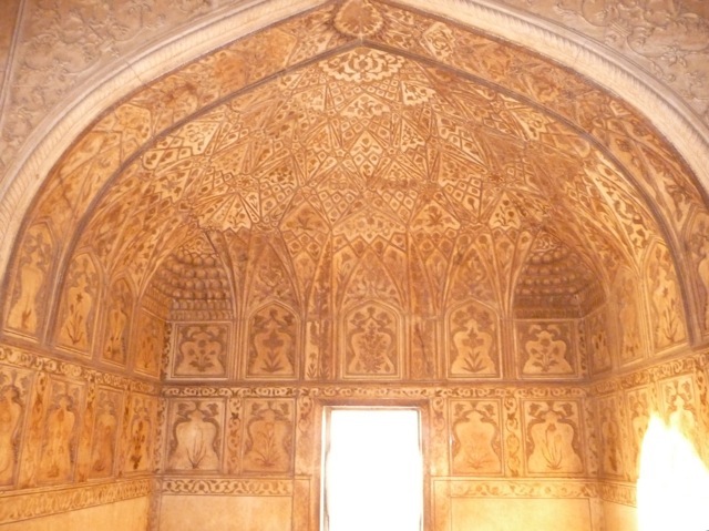 The Agra Fort was decorated with semi- and precious stones. But they were not inlaid into the marble walls, but only pasted on. The British desecrated the artwork by prying out the stones and took away the loot.