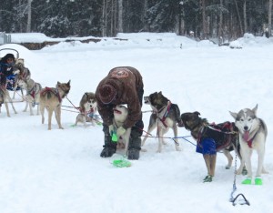 Once in awhile, a dog would lean over and bite off a chunk of snow. They get thirsty from hard work and quenched themselves with snow.